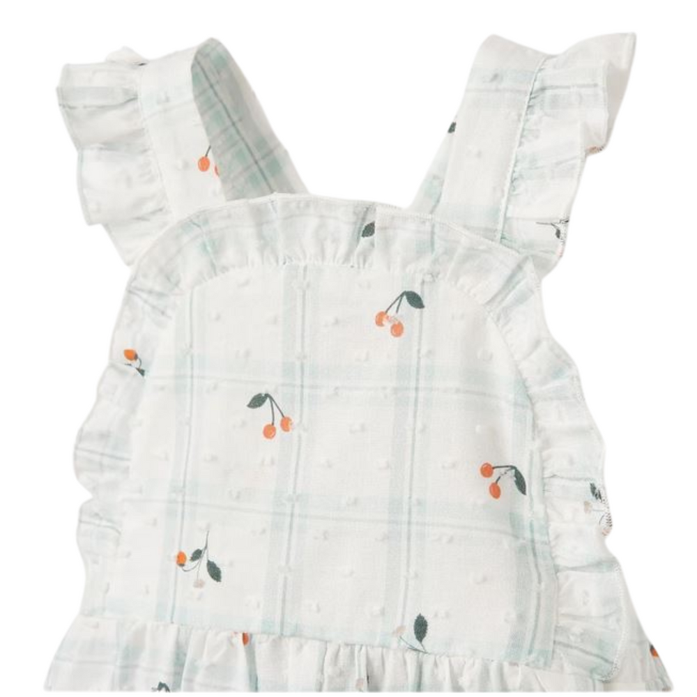 6-9M STRAWBERRY PICNIC SWISS DOT BIBBED BUBBLE