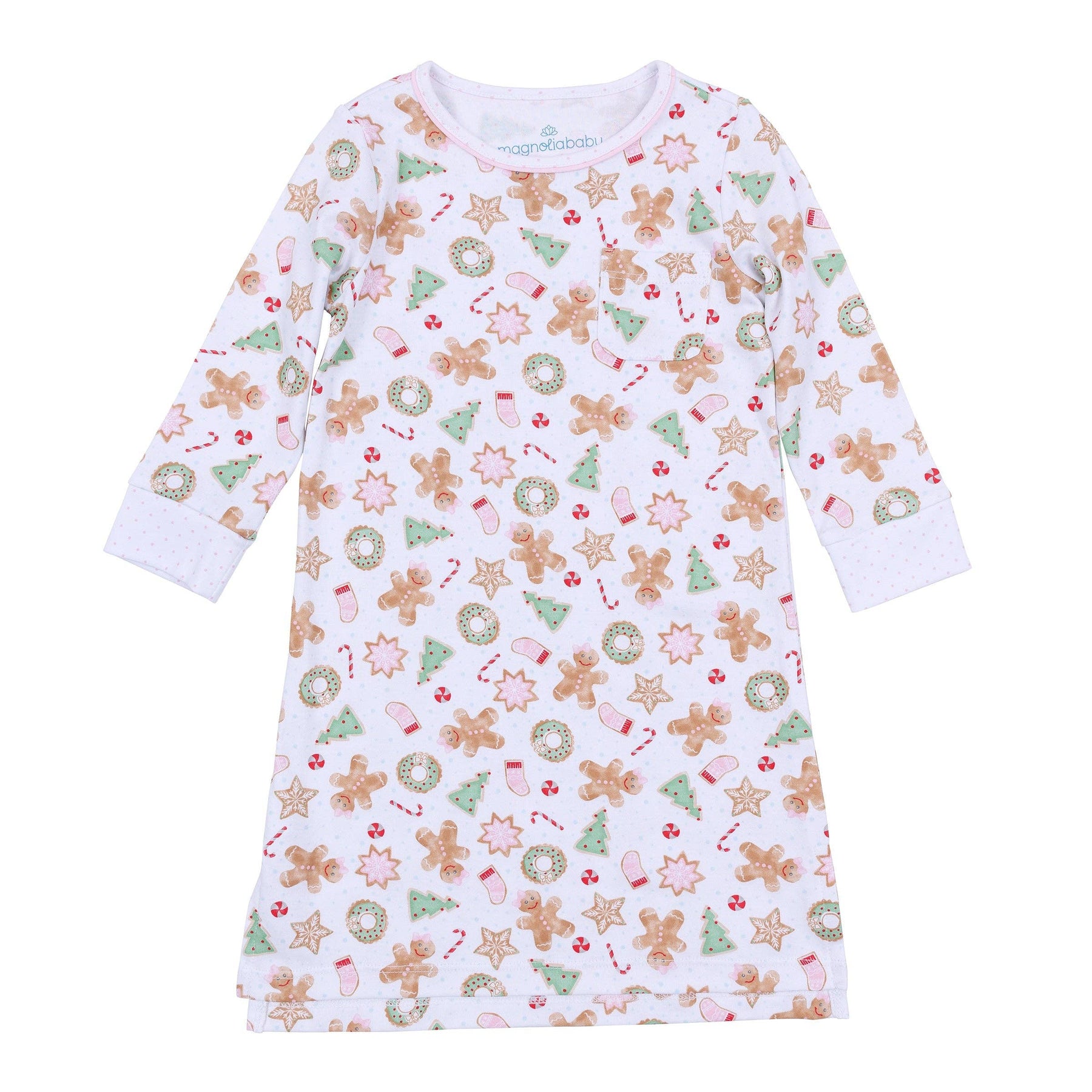 Magnolia Baby - Frosted Wonderland Long Sleeve Nightdress - Pink A perfect blend of festive charm and comfort, this long sleeve nightdress is a delightful addition to your baby's wardrobe. It is crafted from luxurious Pima Cotton and features a print and a long silhouette for maximum coziness.