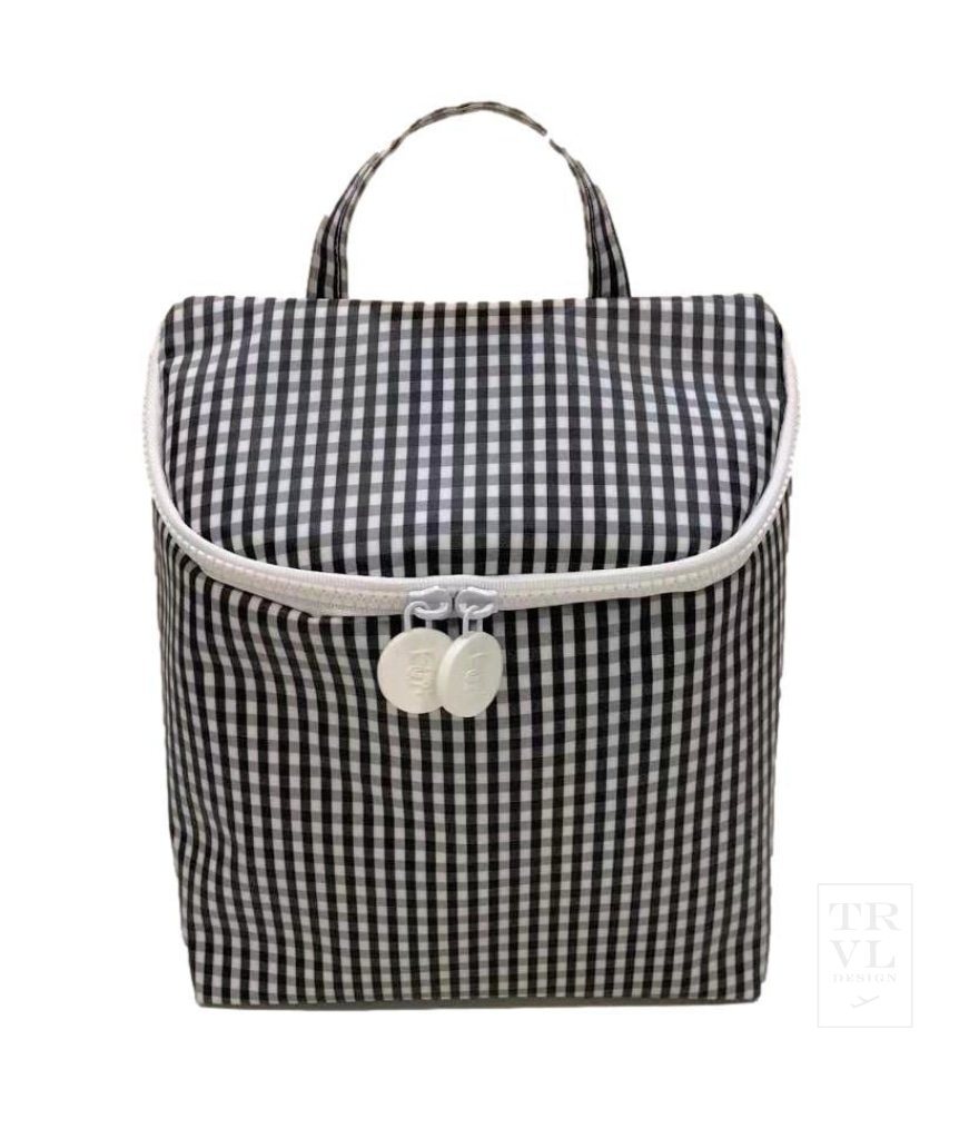 The TRVL DESIGN collection offers a wide variety of vinyl-coated products in multiple colors and modern prints, including their signature gingham, that are great for little ones and adults.